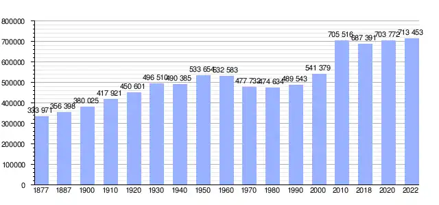 Gráfica de evolución demográfica de Provincia de Toledo entre 1877 y 2022