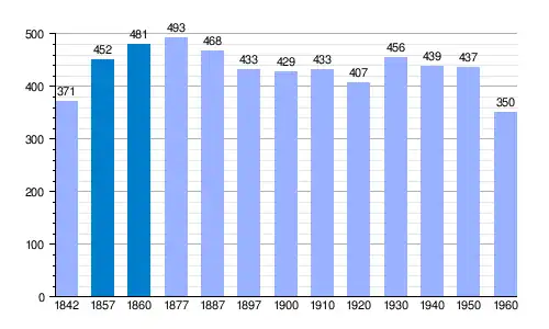 | Gráfica de evolución demográfica de Toledo de Lanata[4] entre 1842 y 1960 |