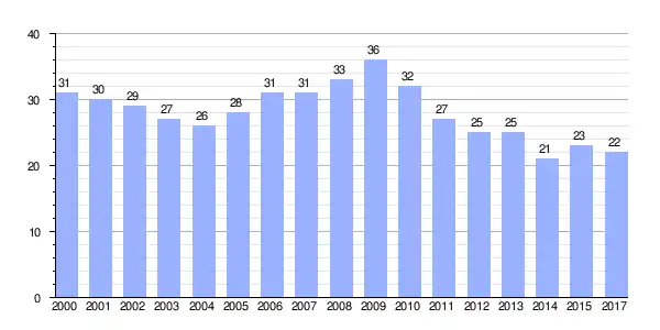 | Gráfica de evolución demográfica de Tolosa[1] entre 2000 y 2017 |