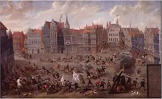 ![]() La furia inglesa en el Grote Markt en Malinas por Nicolaas van Eyck | ||||