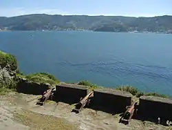 - En color negro: baterías y reductos menores del sistema de defensa.