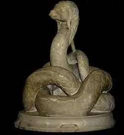 Singular es una estatua de serpiente con cabeza de perro y cabellera humana que representa al milagroso Glicón, que tuvo en el siglo II un culto muy difundido en Asia Menor, nacido de un increíble fraude: un charlatán había tenido la idea de exhibir una serpiente domesticada, haciéndola pasar por una encarnación de Esculapio.