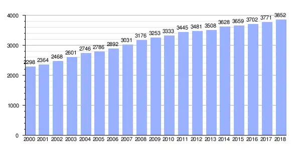 | Gráfica de evolución demográfica de Torás[2] entre 2000 y 2018 |