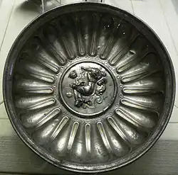 La toreútica floreció hasta un grado inusitado entre los pueblos de Asia Menor, Asiria y Babilonia, y de allí pasó a la Antigua Persia.[3] Un ejemplo espectacular de la influencia directa de Persia en la toreútica es, según se cree, el Tesoro de Nagyszentmiklós, hallado en Transilvania en 1799, y considerado obra de antiguos orfebres búlgaros.[4] Consta de 23 vasijas de oro de la Alta Edad Media, habiéndoselo atribuido a los hunos de Atila,[5] los ávaros[6] y los pechenegos. Sin embargo, la mayoría de los estudiosos lo consideran búlgaro (protobúlgaros,[7] debido a sus inscripciones rúnicas.[8]