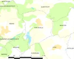 Torcheville es una población y comuna francesa, en la región de Lorena, departamento de Mosela, en el distrito de Château-Salins y cantón de Albestroff.