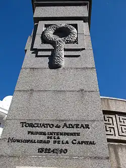 Torcuato de Alvear falleció en 1890 y sus restos se encuentran en el Cementerio de la Recoleta, en un mausoleo familiar diseñado por el arquitecto Alejandro Christophersen en 1905.