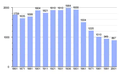 | Gráfica de evolución demográfica de Torella del Sannio entre 1861 y 2001 |