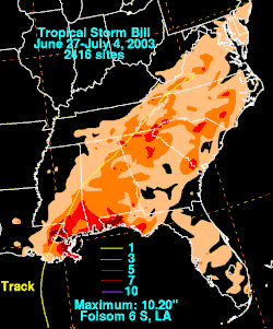 - ↑ Peachtree City, GA National Weather Service (2003). «Rainfall in Georgia Associated with Tropical Storm Bill». Archivado desde el original el 27 de septiembre de 2006. Consultado el 22 de octubre de 2006.
