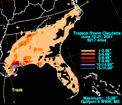 - ↑ Richard Pasch (20 de junio de 2021). «Tropical Depression Claudette Discussion Number 14». www.nhc.noaa.gov. Miami, Florida: National Hurricane Center. Consultado el 21 de junio de 2021.