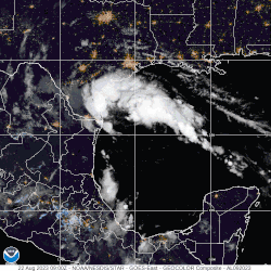 ![]() La Tormenta tropical Harold tocando tierra en el estado norteamericano de Texas el 22 de agosto de 2023. | ||