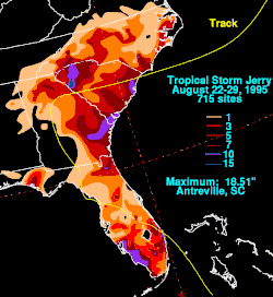 - ↑ «'Jerry' causes flooding in much of Carolinas». Associated Press. 1995. Consultado el 4 de junio de 2025.