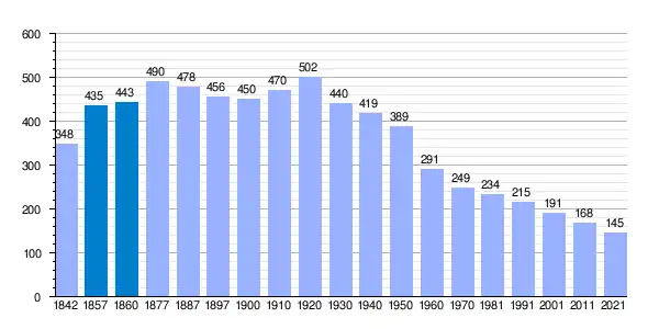 | Gráfica de evolución demográfica de Torms[3] entre 1842 y 2021 |