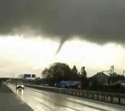 - ↑ "Un inusual tornado causa daños en la ciudad de San Carlos" de 24horas.cl