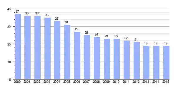 Población de derecho (2000-2015) según los censos de población del INE a 1 de enero de cada año.[10] |