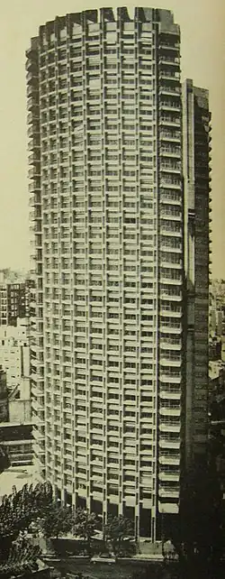 De los 13 proyectos presentados, fue elegido el de los arquitectos Luis Caffarini, Alfredo Joselevich y Alberto Ricur, que dirigieron las obras, comenzadas en 1968. El ingeniero Aníbal Petersen elaboró para el edificio un programa de ejecución por camino crítico, logrando que los trabajos se desarrollaran con la velocidad necesaria, ya que el plazo original era de 900 días para entregar los departamentos (julio de 1970). Las dos empresas que se asociaron para llevar adelante los trabajos fueron Polledo S.A.I.C. y Roberto S.J. Servente, ing. civil S.R.L., y el edificio fue terminado finalmente en 1971.