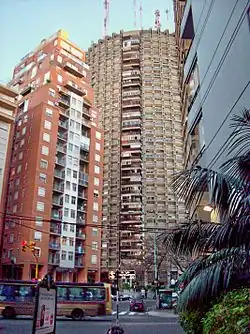 El edificio consiste en un gran bloque se planta semicircular, dispuesta de tal manera que el sol recorra todos los departamentos de cada piso a lo largo del día. Considerando que la napa freática estaba a un metro de profundidad con respecto al nivel del 2.º subsuelo del edificio, se realizaron los cimientos con el sistema de pozo romano, volcando alrededor de 1500 metros cúbicos de hormigón en 45 días.