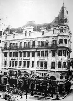 En la esquina de la Avenida de Mayo y la calle Chacabuco se encontraba un edificio proyectado por el arquitecto inglés Edwin Merry, adquirido en 1900 por la compañía de seguros La Rosario. En la planta baja se abrió el Café Madrid, y más tarde el Café La Victoria.