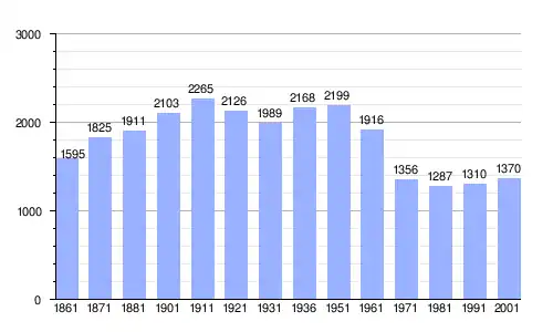 | Gráfica de evolución demográfica de Torre Le Nocelle entre 1861 y 2001 |