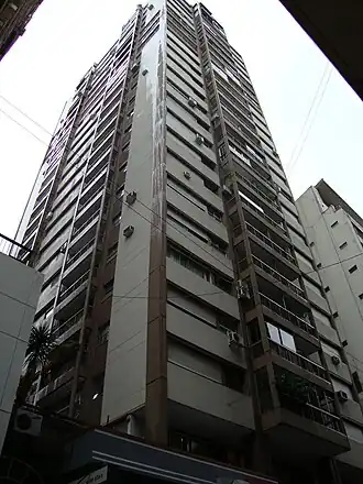 El núcleo ocupado por 3 ascensores fue situado en el centro del edificio, dejando el perímetro reservado para departamentos de 1, 2 y 3 dormitorios con dependencias de servicios. El coronamiento fue destinado a departamentos dúplex con jardín y pileta de natación.