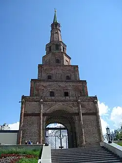 Algunos llegan a afirmar que la torres es tan solo lo que queda de la estructura de la ciudadela tártara pre-rusa. Si bien el edificio refleja algunas características originales de la arquitectura tártara, en su diseño se encuentra cierta influencia de las torres del Kremlin en Moscú. Los que apoyan esta teoría afirman que estructuras similares fueron construidas en Asia Central, que estaban política y culturalmente conectadas con el desaparecido kanato de Kazán. Hay indicios que prueban esta teoría, como el tamaño de la construcción, la ausencia de cualquier evidencia documental de ser una construcción rusa, el respeto a la torre por parte de la población tártara local, entre otros.