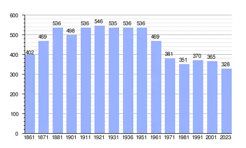 | Gráfica de evolución demográfica de Torre de' Negri entre 1861 y 2023 |