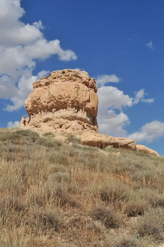 Actualmente solo queda la base con una gran piedra caliza en la base, con varias hiladas de sillarejos.