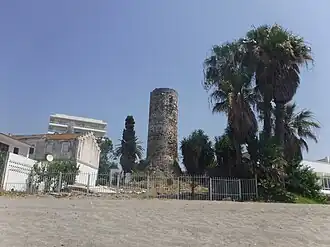 Se trata de una torre de unos 12 metros de altura y apenas 5 metros de diámetro. Está situada en la margen derecha de la desembocadura del río Guadalmina y toma su nombre por unas termas romanas cercanas.