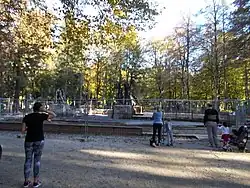 En el entorno de la antigua torre se puede encontrar una columna dórica griega con la inscripción "Arkadien, ein Königreich in Spartas Nachbarschaft" (Arcadia, un reino en la cercanía de Esparta). Esta columna es obra del artista escocés Ian Hamilton Finlay.[3]
