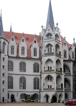 Una torre de escalera (en alemán: Treppenturm, Stiegenturm o Wendelstein) es un cuerpo de edificación exento con forma de torre dispuesto externamente en el ala de un edificio, o en las esquinas, con planta circular o poligonal, que contiene el "hueco" por donde se sitúa una escalera, normalmente una escalera de caracol. Disponer las escaleras por fuera del cuerpo de edificación principal hacia que fuera más fácil forjar apoyándose en los muros perimetrales de carga y no obstaculizaba las circulaciones interiores.