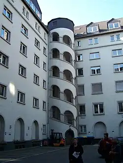 Las torres de escalera de hormigón armado todavía se utilizan en edificios industriales altos, como salas de calderas en centrales eléctricas de carbón.[1]
