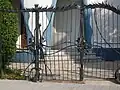 El edificio está rodeado de un jardín circundado por una valla con coronamiento ondulado y una puerta de acceso de hierro forjado muy trabajado. Este jardín y la valla con la reja forman parte del inmueble y participan de sus valores y, por lo tanto, se consideran también monumento.