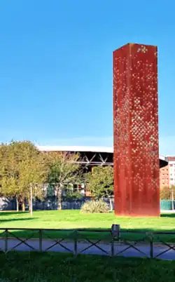 Es una obra de Paco Fresno, mide 16m de alto y 3m por cada lado de la base, tiene forma de torre de base cuadrada y fue erigida en la ciudad en el 2000, está hecha de hierro y recubierta de acero corten en su capa exterior, con mil engarces de acero inoxidable pulidos acabados en espejo. Es un homenaje que representa en forma de torre o faro interior a las múltiples chimeneas símbolo de la industrialización de la antigua sociedad gijonesa y erigida en su emplazamiento como recuerdo de la vieja fábrica que durante tanto tiempo funcionó en los terrenos donde hoy se asienta el parque y que dio su nombre a toda la zona.[2]