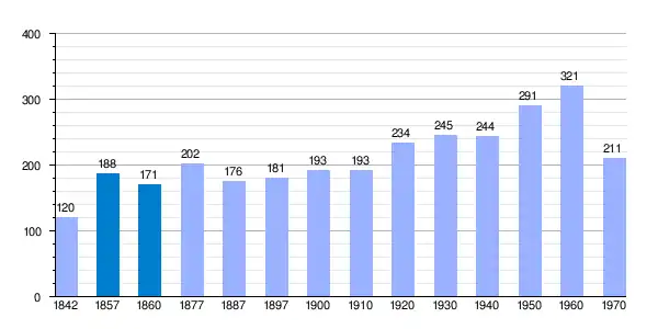 | Gráfica de evolución demográfica de Torre de los Molinos[3] entre 1842 y 1970 |