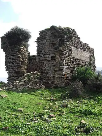 El edificio tiene planta rectangular con unos 8 metros en su máxima longitud. Debió alcanzar los 13 metros de altura aunque en la actualidad los restos conservados no superan los 6 metros. Poseyó dos plantas y sótano accesibles a través de unas escaleras de obra cuyo arranque y parte de su bóveda de ladrillo se conservan actualmente. Los materiales empleados en su construcción fueron mampuestos y lajas de piedra similares a los presentes en las colinas y cerros próximos unidos con argamasa.[4]