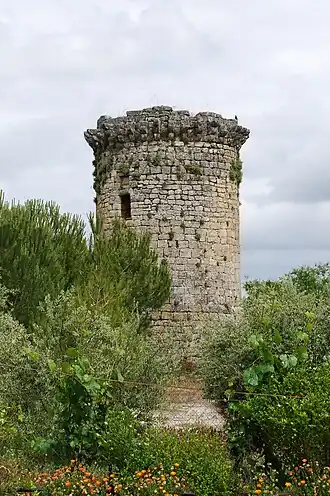 Esta torre o atalaya de planta circular tiene en la base un reforzamiento de forma troncocónica que hace su perímetro sensiblemente mayor que el de otras torres cercanas (aproximadamente 23,40 metros). Su entrada aparece en alto y a ella se debía acceder por medio de unos troncos de madera dispuestos horizontalmente y embutidos en el cuerpo de la torre que, a modo de escalones en una escalera de caracol exterior, pondrían en contacto con el suelo la puerta de entrada de la torre. El remate se hizo con los típicos canecillos medievales que a modo de balconada circular permitiría dar una máxima visibilidad desde el edificio. La base está rellena en su interior por piedras y yeso, y enlucidas al exterior por sillares regulares bien trabajados.[2]
