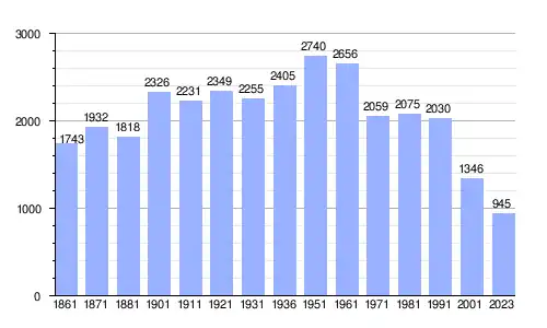 | Gráfica de evolución demográfica de Torre di Ruggiero entre 1861 y 2023 |