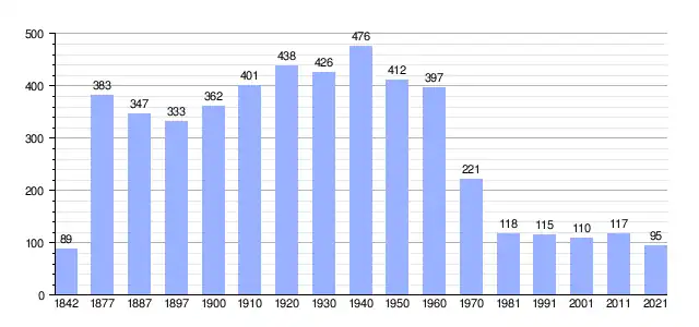 | Gráfica de evolución demográfica de Torre la Ribera[4] entre 1842 y 2021 |