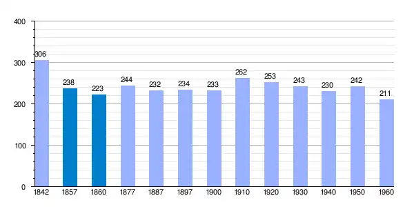 | Gráfica de evolución demográfica de Torrearevalo[7] entre 1842 y 1960 |