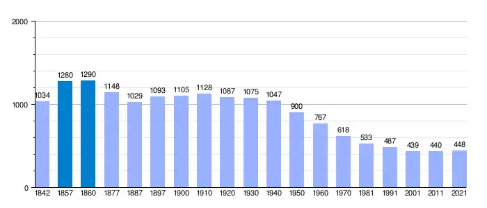 | Gráfica de evolución demográfica de Torrecilla de Alcañiz[3] entre 1842 y 2021 |