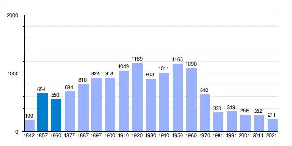 | Gráfica de evolución demográfica de Torrecilla de la Jara[3] entre 1842 y 2021 |