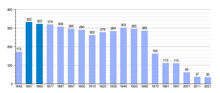 | Gráfica de evolución demográfica de Torrecilla sobre Alesanco[2] entre 1842 y 2021 |