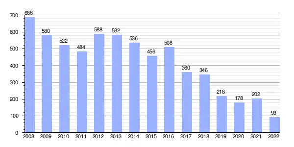 | Gráfica de evolución de la deuda viva del Ayuntamiento de Torres entre 2008 y 2022 |