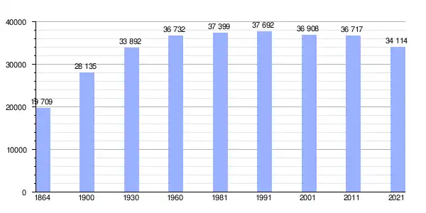 | Gráfica de evolución demográfica de Torres Novas entre 1864 y 2021 |