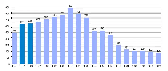 | Gráfica de evolución demográfica de Torrevelilla[4] entre 1842 y 2021 |
