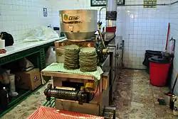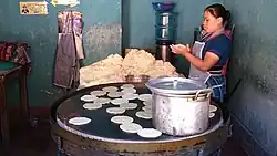 ![]() Tortillas de maíz de máquina tortilladora en Ciudad de México. | ||