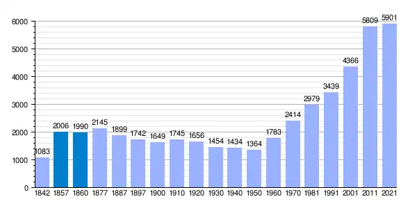 | Gráfica de evolución demográfica de Tosa de Mar[3] entre 1842 y 2021 |
