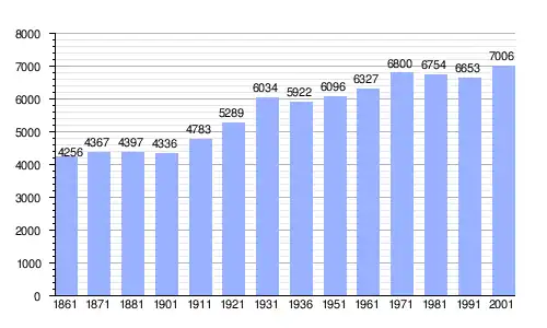 | Gráfica de evolución demográfica de Toscolano-Maderno entre 1861 y 2001 |