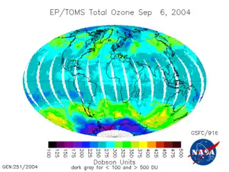 - ↑ «TOMS turns the mapping job over to OMI». Total Ozone Mapping Spectrometer. NASA. 9 de enero de 2006. Archivado desde el original el 27 de enero de 2006.