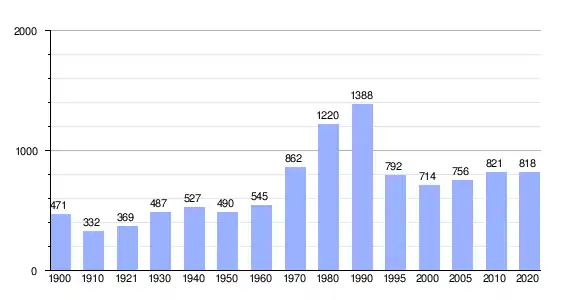 En 2020 registró una población de 818 personas, lo que corresponde al 2.22 % de la población municipal.[7] De los cuales 391 son hombres y 427 son mujeres.[7]