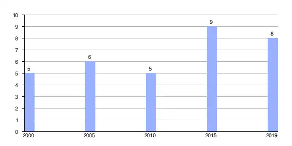 | Gráfica de evolución demográfica de Touriño entre 2000 y 2019 |
